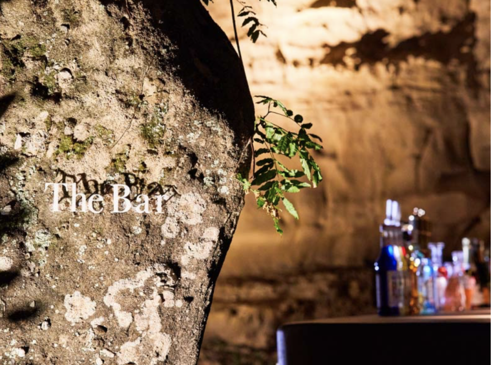 ライトアップした岩肌の前にはバーカウンターもあり、バーはもちろんFREEでご利用いただけ、追加料金はかかりません。