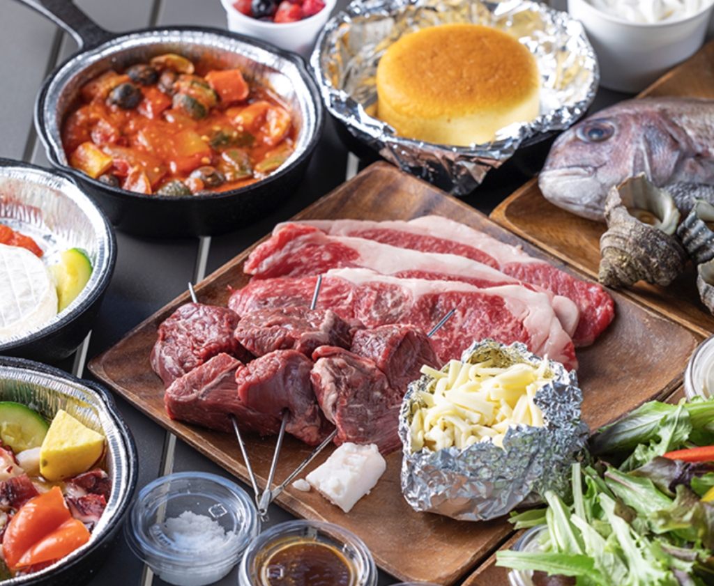 瀬戸内エリアのお肉や海の幸がたっぷりのグランピングバーベキューをご堪能いただけます。ご当地食材を手間なく味わう、ラグジュアリーなグルメグランピングをお楽しみください