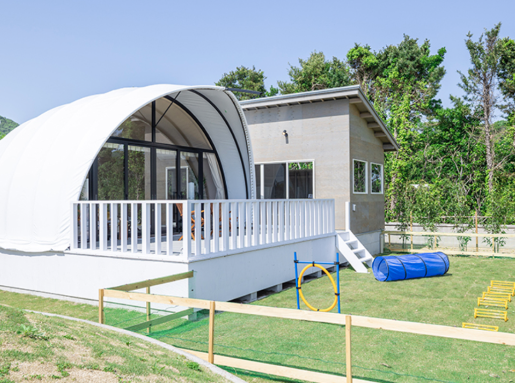 わんちゃんも大切な家族の一員。愛犬とのびのびと過せるスイートヴィラが2棟あり、わんちゃんが広々と走り回ることのできるドッグランスペースがあります。他のお客様や、他のわんちゃんを気にすることなく、悠々と過ごせます。快適なグランピングを通じて、飼い主様と愛犬の絆がさらに深まる旅行になるでしょう。