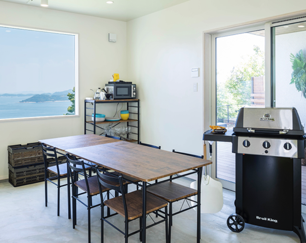 安心・快適にお過ごしいただけるように各棟に冷暖房完備のお食事スペースを完備。各棟個別のお風呂からは瀬戸内海と島々のパノラマが見えます。トイレはもちろんウォシュレット付きです。