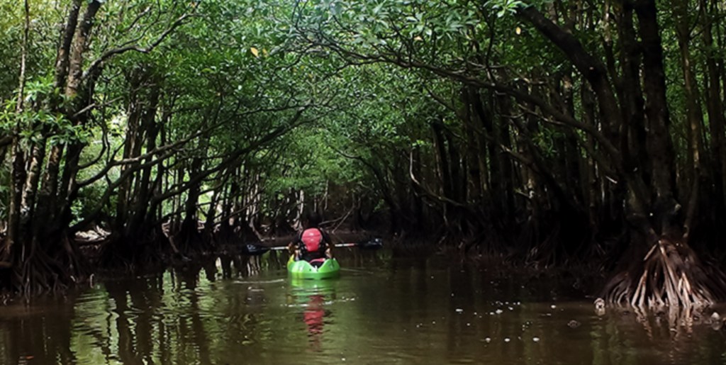 西表島と言ったらマングローブカヤックは外せません。広く壮大な川を漕ぎ進み、 かと思いきや狭い支流も攻めちゃいます。支流に入ると雰囲気もガラッと変わり、 一気に癒しの空間へ変わります。マングローブに囲まれた空間は満足度、感動度100%です。