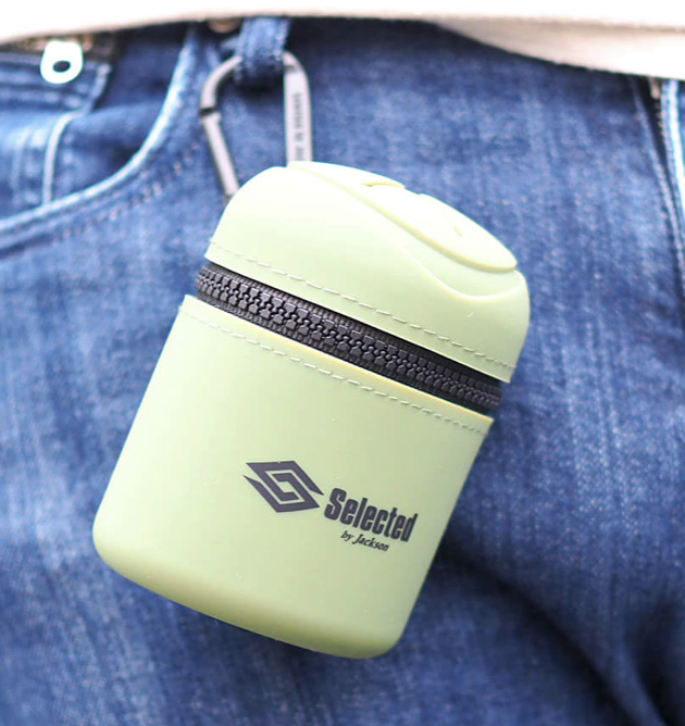 釣行時、「ラインの切れ端をバックやポケットに入れたいけどうまく指から離れない」といったストレスもありません。環境や人の体に優しいシリコン素材のため、ゴミ入れだけでなくスナック類や散歩時のペットのおやつ入れなど、釣り場以外でも様々な用途でも使えます。丈夫なカラビナもついているのですぐに使えます。