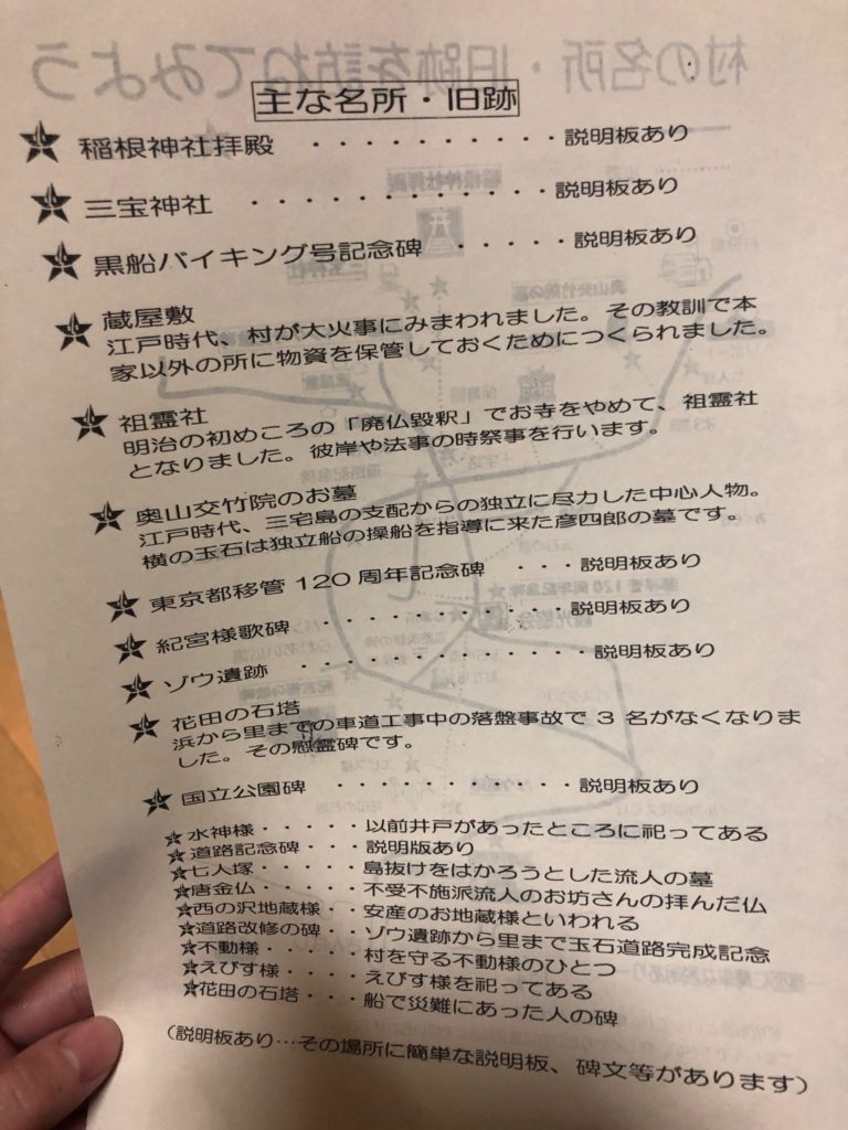 他にも御蔵島には名所があり、地図が宿に用意されていました。