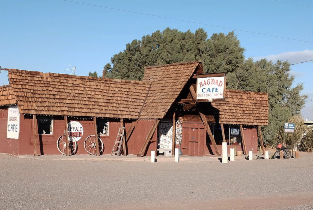 ラスベガスとロサンゼルスの間のバーストウという町から車で東へ20分。何もないルート66にたたずむ「バグダットカフェ」