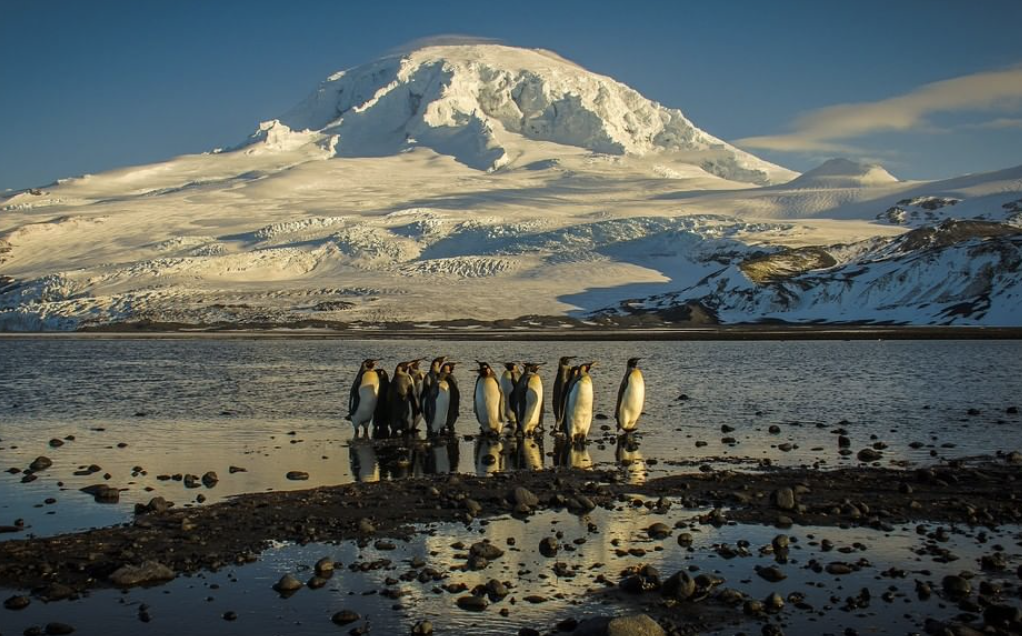 南極大陸から約1700kmの海洋に浮かぶハード島は、標高2745mのマウソン山がそびえ、亜南極圏唯一の活火山島です。島全体が氷河に閉ざされているため、生育する植物は、数種の草やコケ類のみです。ハード島とマクドナルド諸島には原始のままの生態系が残されており、アザラシなどの海生哺乳類、ペンギンやアホウドリなどの海鳥が繁殖を続けています。特にペンギンは、中型のマカロニペンギンと、全長90cm以上にも達する大型のキングペンギンで、それぞれ200万羽を超える繁殖数を誇っています。