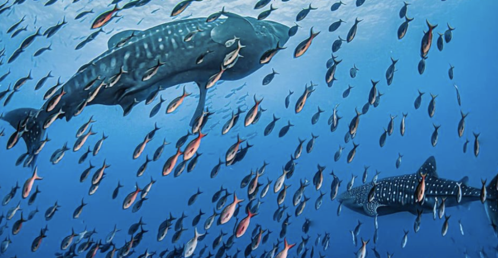 深水域は、大型捕食魚や遠洋性硬骨魚に適した環境で、シュモクザメやクロトガリザメ、ジンベイザメなどが生息しています。また、陸地ではアオツラカツオドリが4万羽以上のコロニーを作っています。